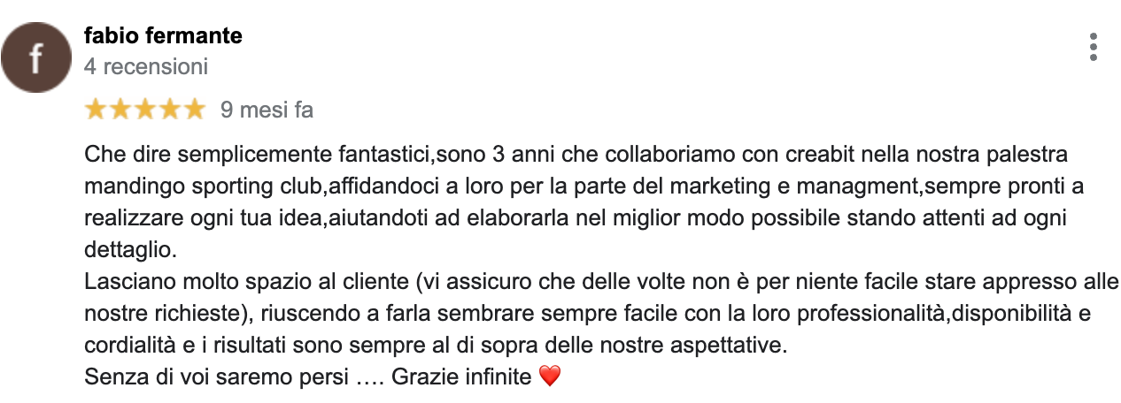 Diventa anche tu uno dei tanti imprenditori soddisfatti che hanno scelto Creabit per far crescere la loro attività online.